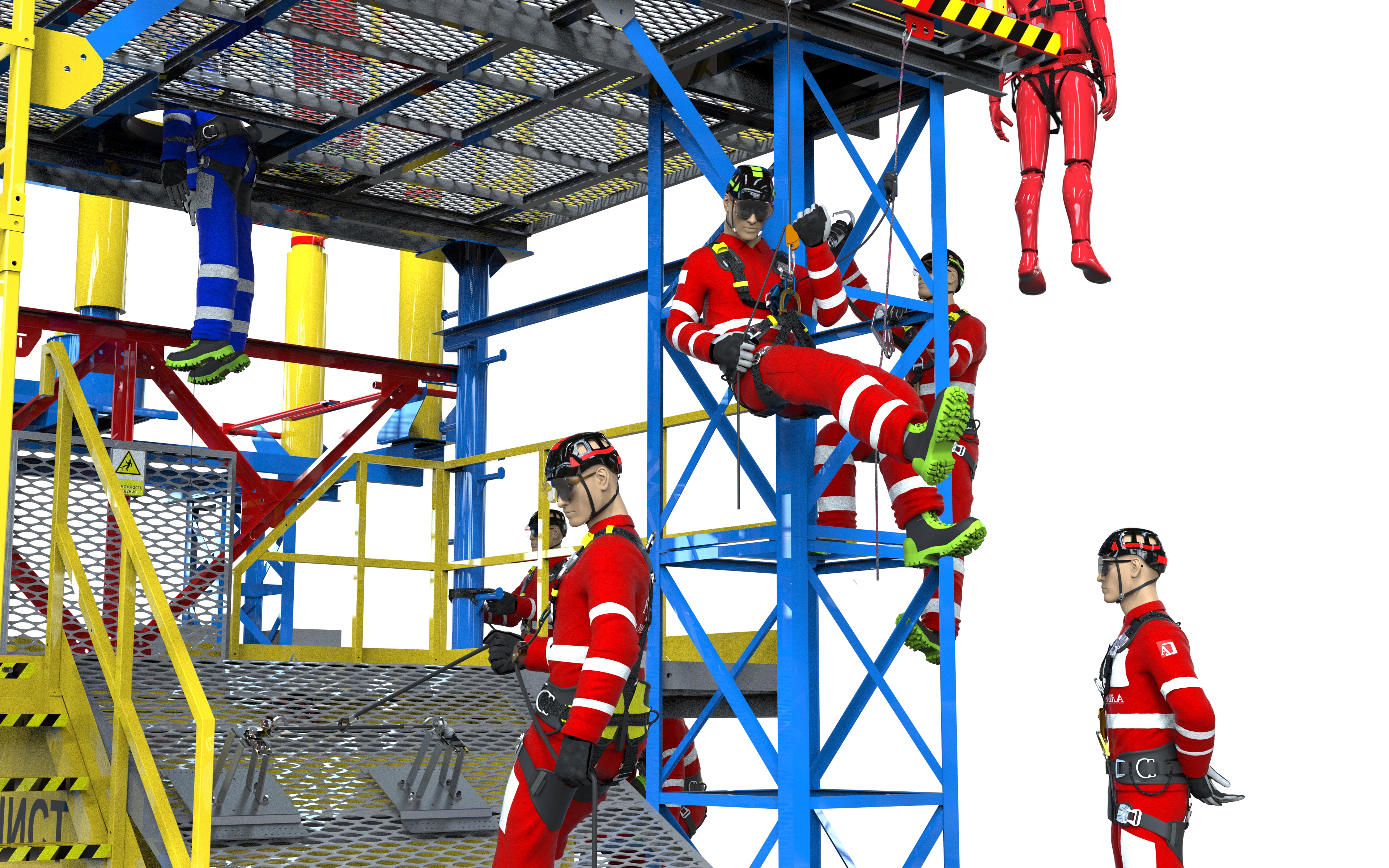 На объекте установлен современный учебно-тренировочный полигон «Альпинист-03-07» для отработки навыков безопасной работы на высоте.